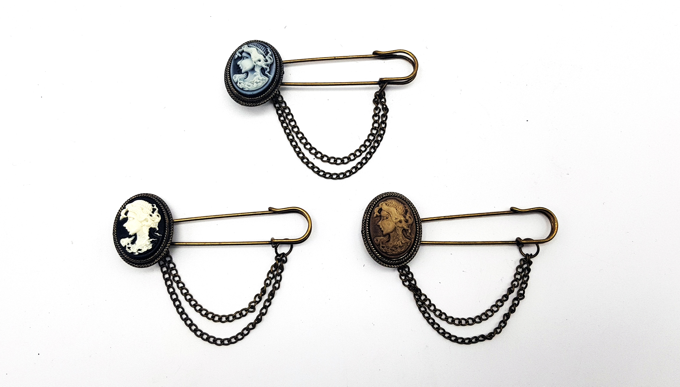Prendedor Alfiler de Gancho Camafeo con Cadenas