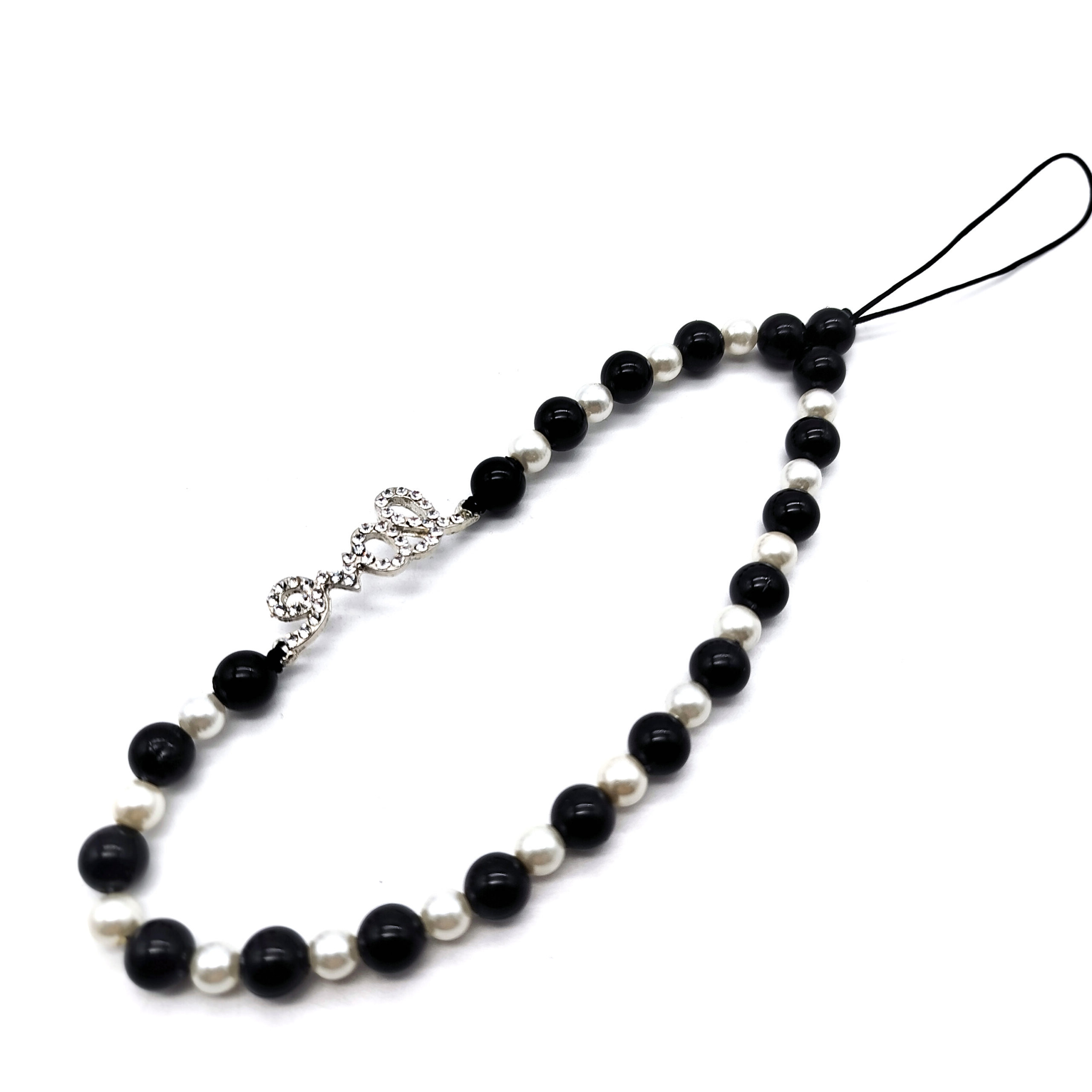 Strap Porta Celular Perlas / Plateado / Negro