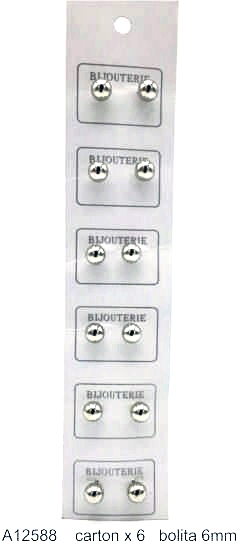 Aro Bolita Metal 6mm. - Cartón x 6 Pares cantidad