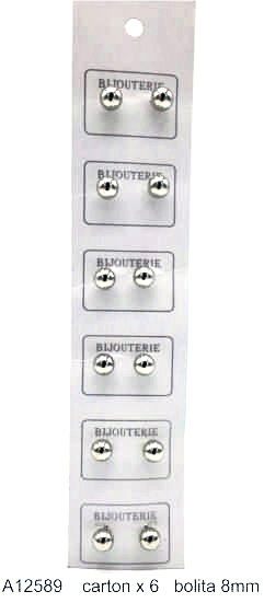 Aro Bolita Metal 8mm - Cartón x 6 Pares cantidad