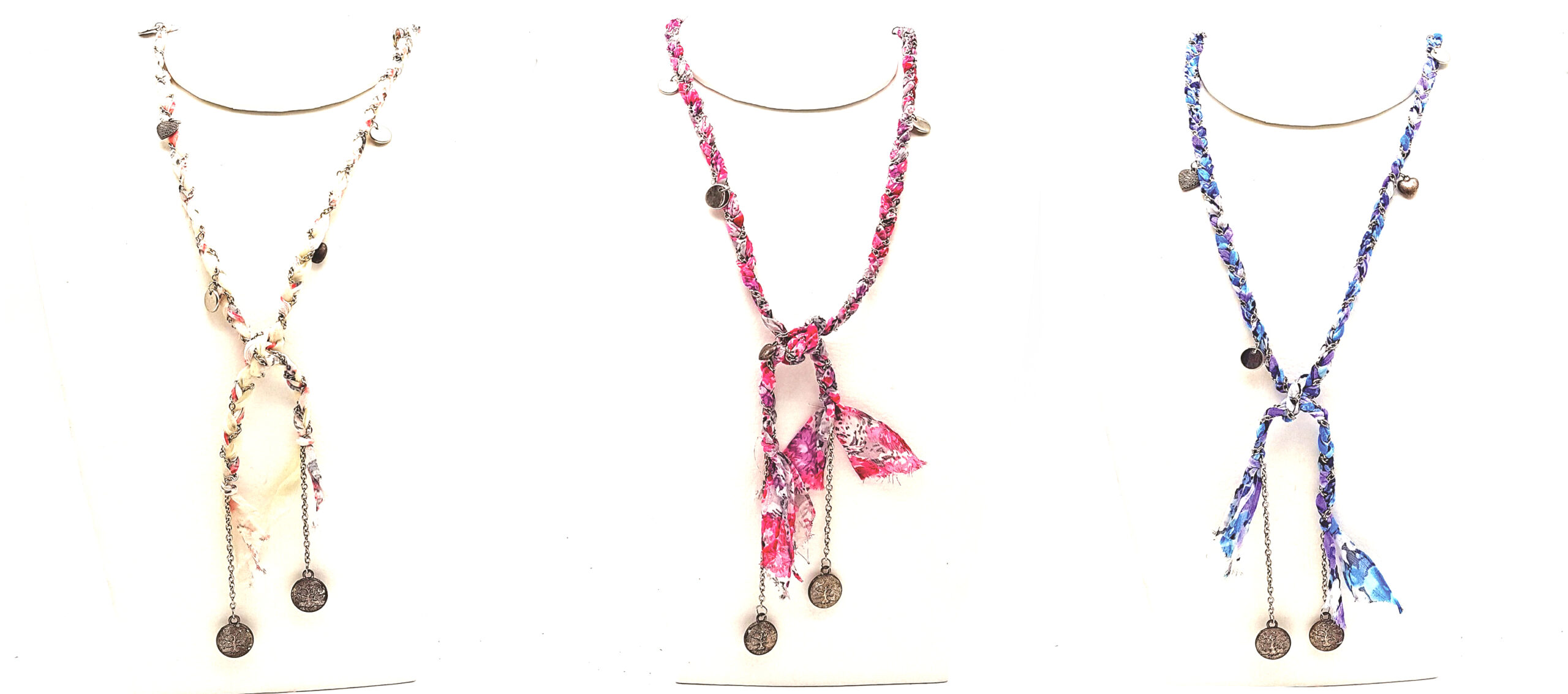 Collar Cadena con Tela Liberty Enlazada Dijes Alternados cantidad