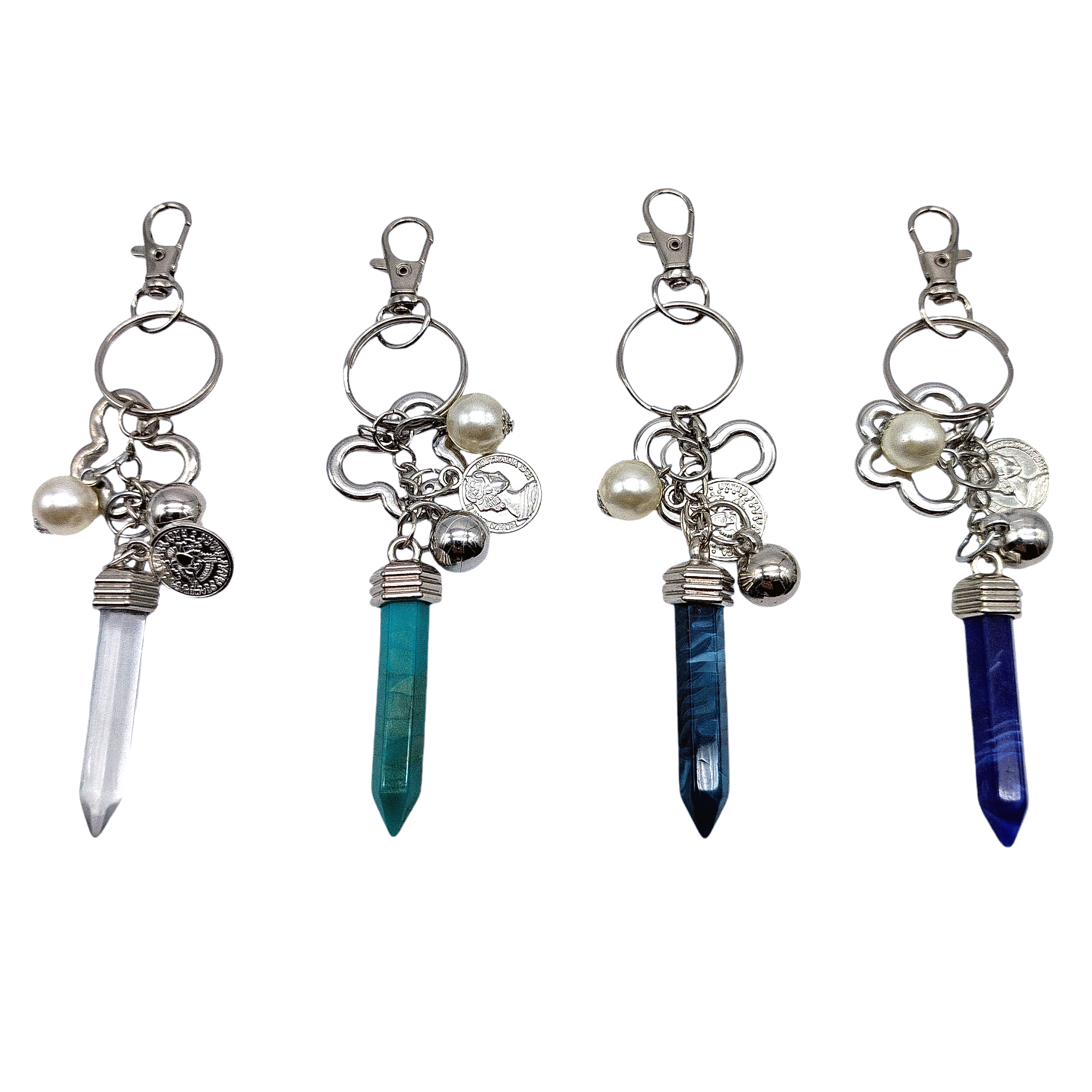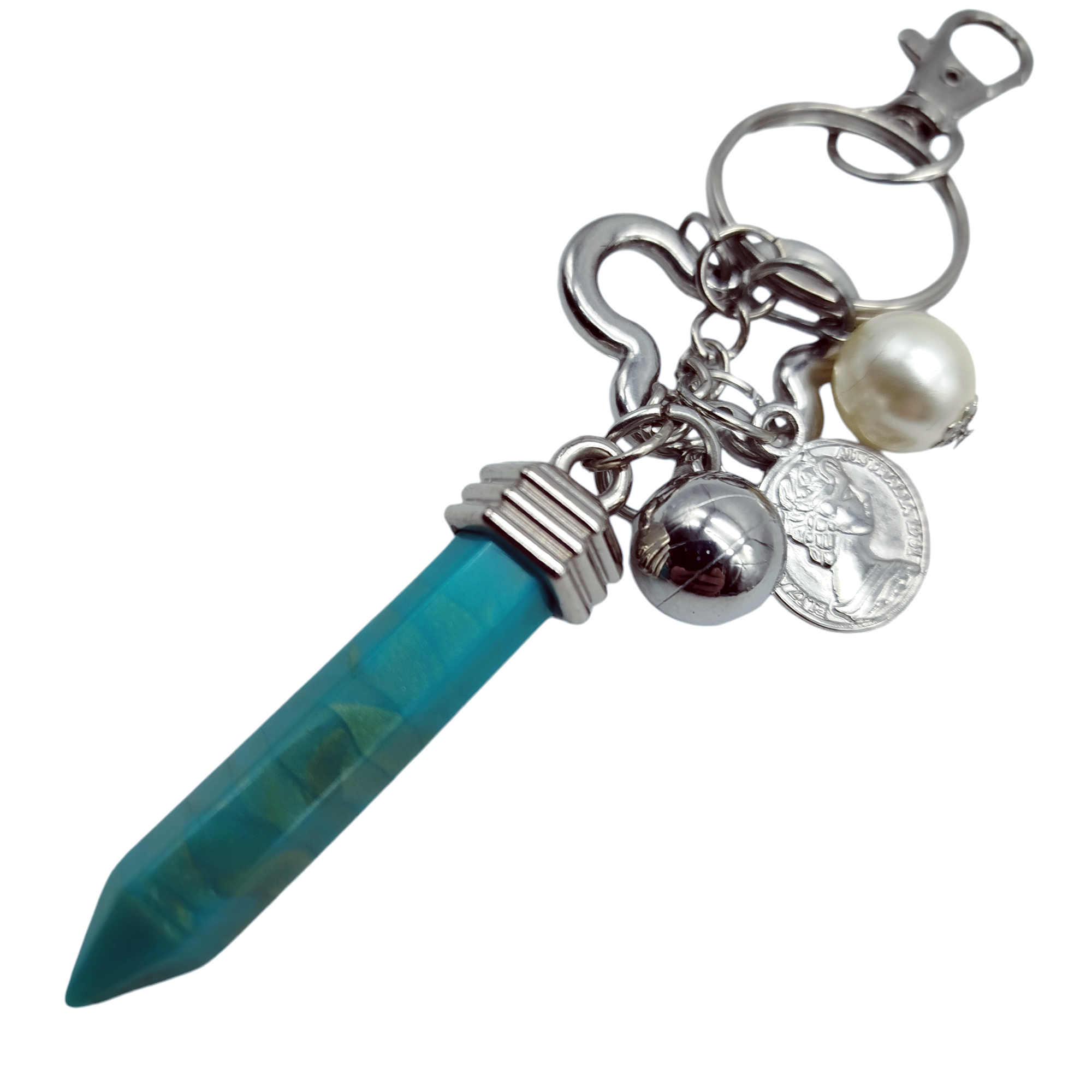 Llavero Racimo Piedra Obelisco con Dijes cantidad